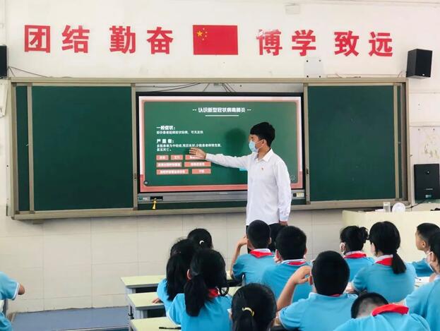 为进一步做好新型冠状肺炎常态化防控工作,精准落实管控措施,倡导健康文明生活方式,提高中小学生疫情防范意识。7月20日,taptap点点官方网站软件学院辅导员王峥老师带领燕赵逐梦队的抗疫志愿者们前往邯郸市丛台区实验小学进行科学防疫知识宣讲。