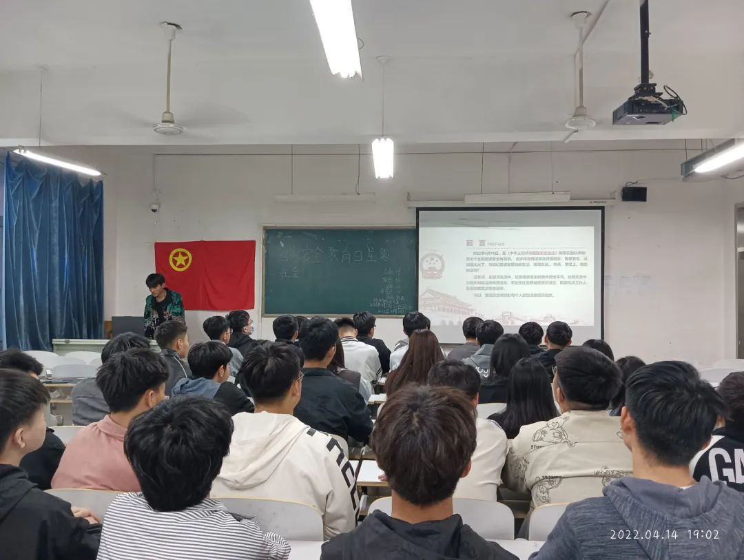3、4月15日,开展“爱国安全教育日”为主题团课活动,组织学生线上观看视频学习:“千万师生同上一堂国家安全教育课”公开课、高校国家安全教育教学风采展示活动、国开大讲堂•国家安全教育公开课,在学生群体中大力宣传、共同学习相关法律法规。向全院学生普及国家安全知识与疫情防控要点,增强了全体师生维护国家安全、保守国家秘密的意识,为共建和谐校园、和谐社会营造了良好的氛围,取得了良好效果。