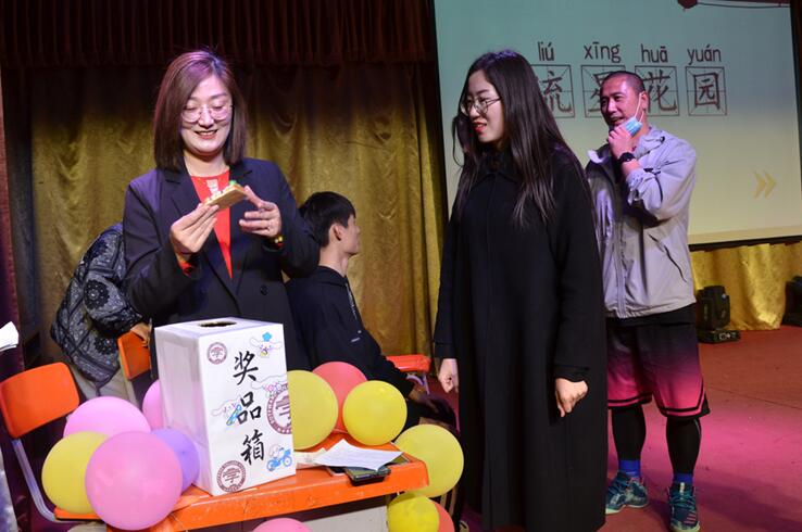 在这场综艺秀中《你画我猜》《千里传音》《中华小曲库》《中西合璧》《三人组词》等游戏给整场活动添加了幽默诙谐的元素,使学生们在活动中,放松身心,在氛围下,彼此信赖,共同进步。