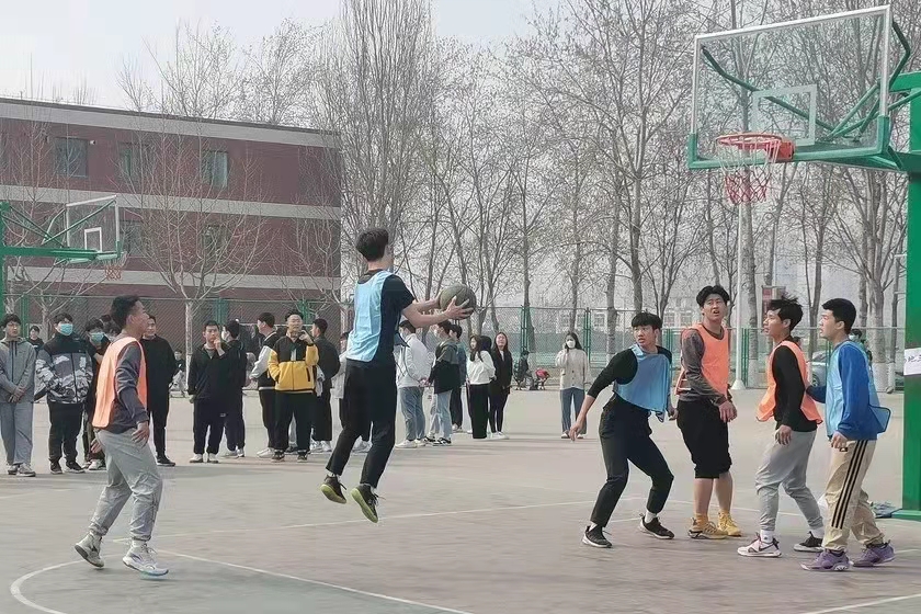 飞转的篮球是队员们运动的轨迹,场下的呐喊是对他们拼搏的肯定!这是耐力与意志的检验,篮球秉着超载自我,挑战自我的目标。奋勇奔跑、跳跃,任汗水流淌湿透球服,可脚步却从不停歇!默契在对抗中提高,友谊在碰撞中升华!这场球赛,酣畅淋漓;这群少年,意气风发!