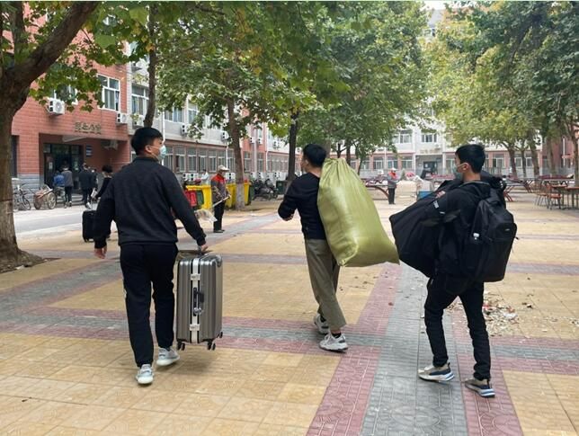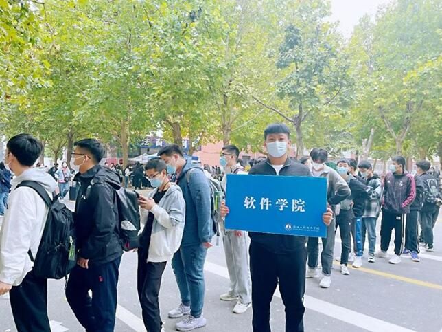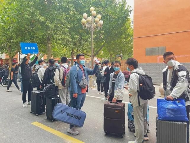 学院领导和老师,期盼着大家的到来!社团干部早上7点集合完毕,等待迎接学弟们!社团干部有序带领大家做核酸检测、领取被褥、搬运行李。一名社团干部对接一个新生,全程护送直至进入宿舍。