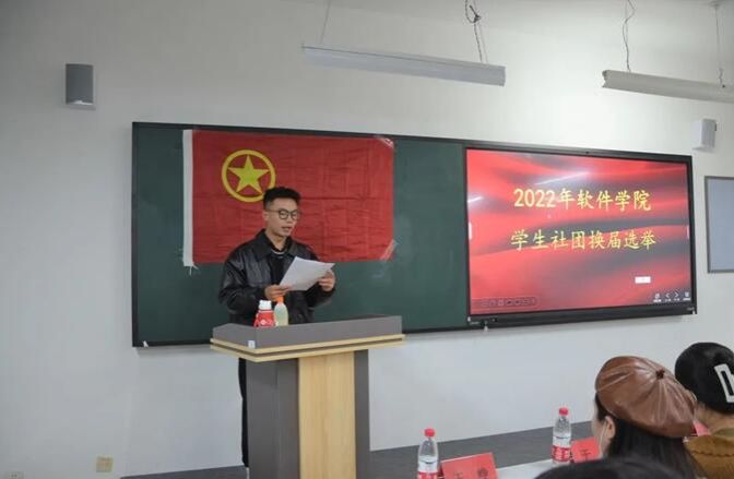 为进一步发挥学生组织和学生干部“自我教育、自我管理、自我服务”的积极作用,加强学生干部队伍建设,推动团总支工作顺利开展,2022年10月18日,软件学院在次教307举行团学干部换届选举大会,团总支书记于录老师、学管办公室主任周玉妹老师,21级辅导员蒙翠平、王峥老师,2020届社团干部以及所有候选人参加本次活动,林德正同学担任主持人。