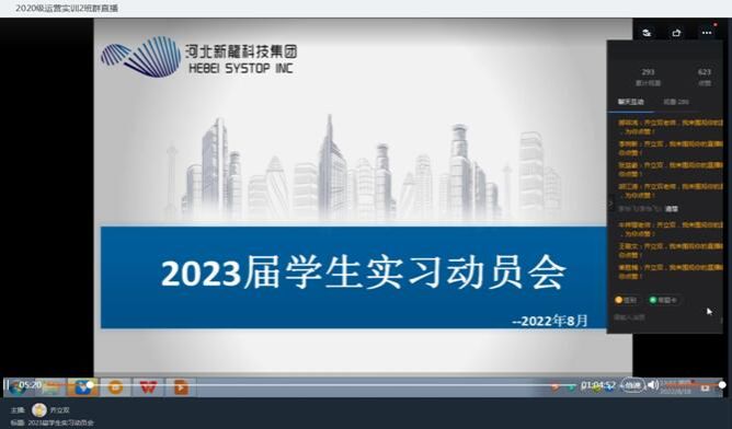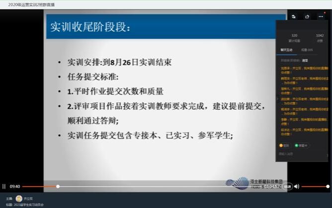 taptap点点2020级特色班学生的实训自7月4日开始,不知不觉中实训已接近尾声,为使学生了解大三阶段实训、实习、论文及实习资料整理等各项工作安排,8月18日,软件学院教质部主任齐立双老师通过钉钉线上形式组织开展2023届学生实习动员会。