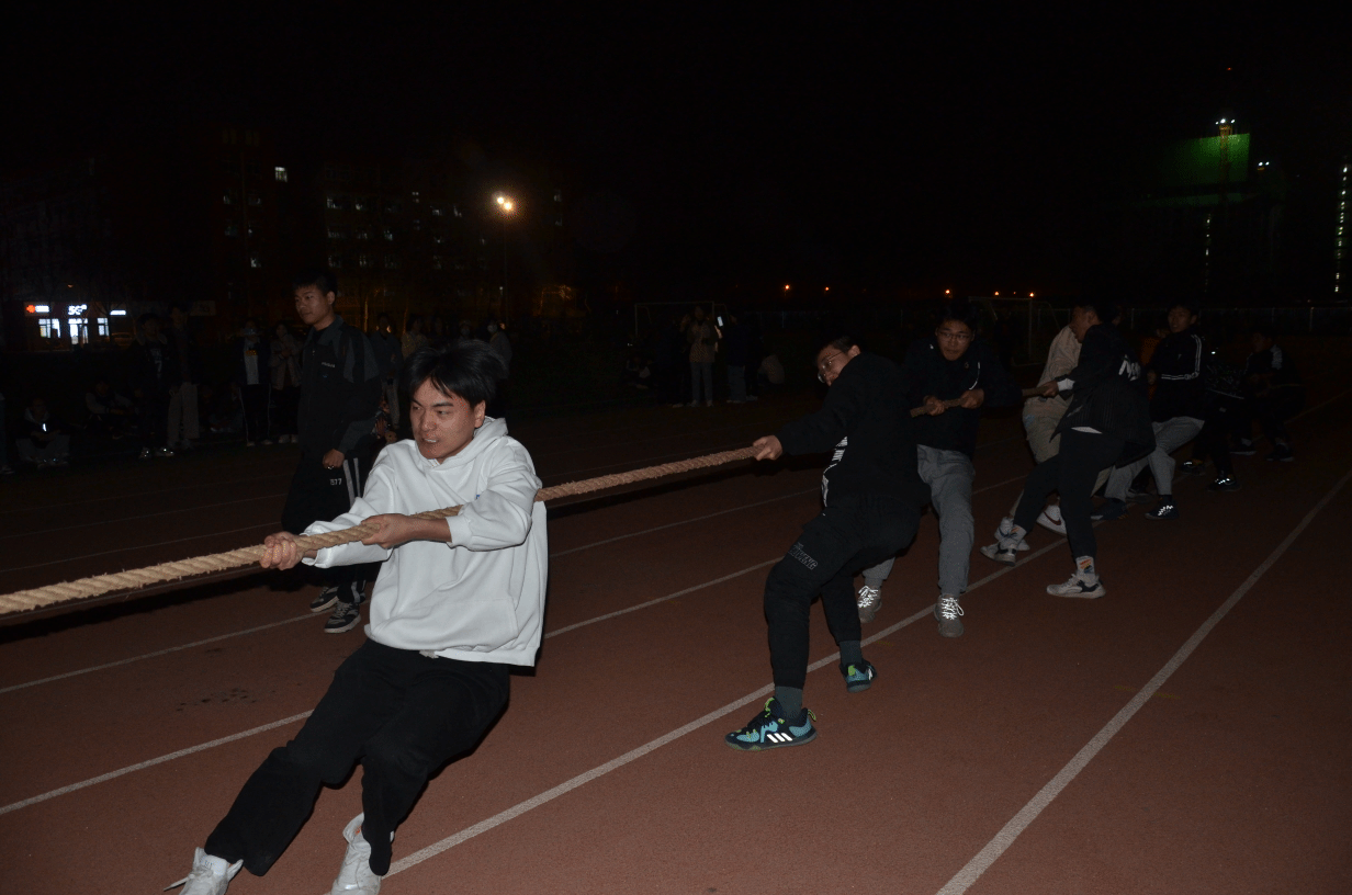拔河比赛这种对立的体育娱乐活动,要求双方人数相等,拉一根粗绳比较力量,是中国的一种传统运动。在拔河的之前,参与的学生们进行了合理的人员匹配,保证人员的合理位置,为能在比赛的时候获胜做准备。