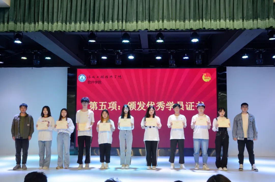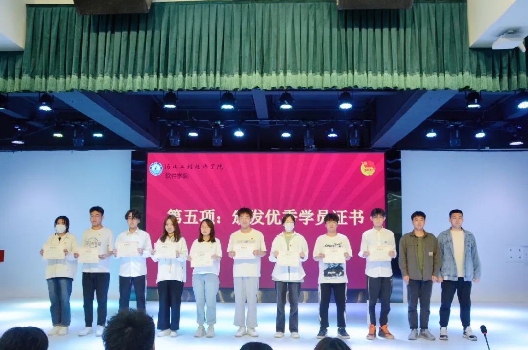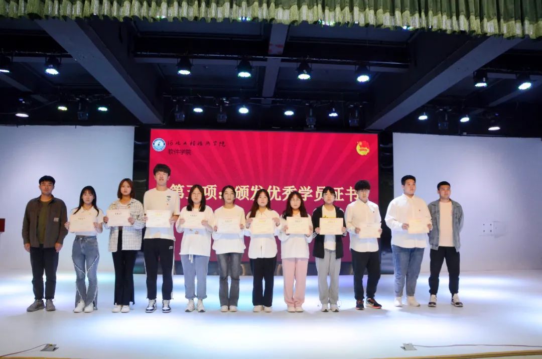 由软件学院团总支学生副书记李龙、组织委员张淋波为优秀结业学员颁发优秀学员证书。这些优秀学员们用行动证明了坚持跟党走中国特色社会主义的理想信念,即使路途荆棘,最终都会收获成长。