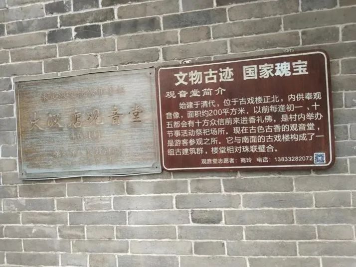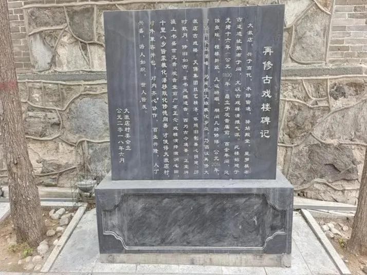 后来经过我们向当地村民询问以及了解,古戏楼位于村中心北大街西侧、西大街北侧,坐南向北正对观音堂。2014年市区政府的支持下,筹资重修此戏楼。这座戏楼近几年又开始有河北梆子,评戏之类的演出,也是重新让这座戏楼恢复了它本来的作用。戏楼的北面是坐北朝南的观音堂。观音堂内,两旁的六座古碑格外引人瞩目。冯骥才曾到此,看过以后,指着光绪年间一块碑上的“巨镇”说:“这说明大激店村曾经是很繁华的,历史上很有地位。”