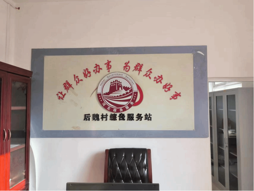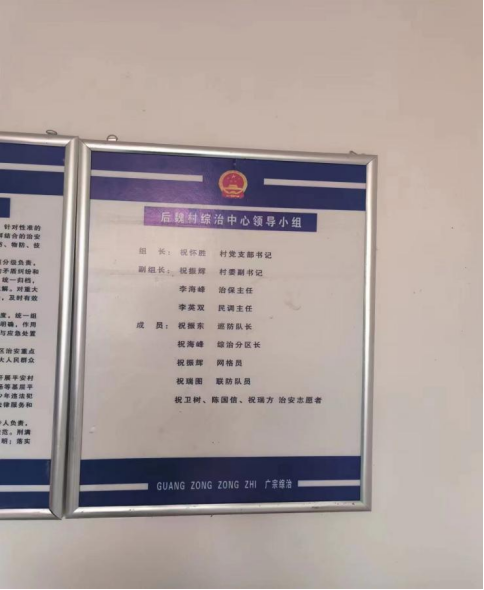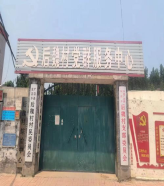 第一站,我们来到了后魏村的村民居委会,见到了后魏村的村书记祝怀胜,他带领我们参观了村委会办公室。祝怀胜,1976年出生,2018年担任起后魏村的村书记兼村长