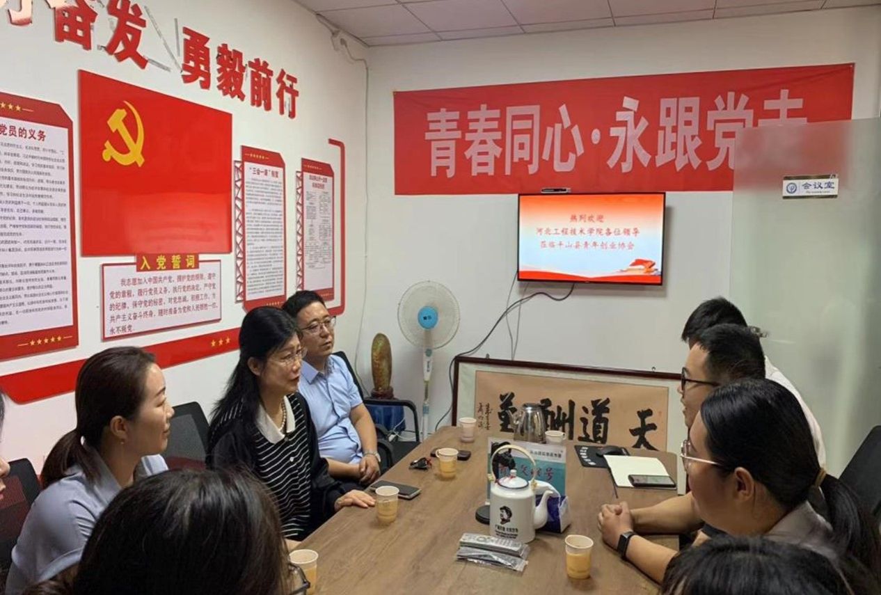 学子求学出家乡,学成归来促家乡。为了使同学们增加就业实践实习机会,提高就业竞争能力,2023年9月14日软件学院院长赵冬梅、党总支书记学管副院长王亚杰、教学副院长张波、办公室主任孙香宁、招生就业办公室主任郑曼、辅导员张跃也走进河北省石家庄市平山县青年创业协会,与共青团平山县委书记韩强、共青团平山县委副书记郄晓兴、平山县青年创业协会会长付立新、平山县青年志愿者协会会长茹志才进行调研座谈并举行大学生就业实习基地合作挂牌仪式。