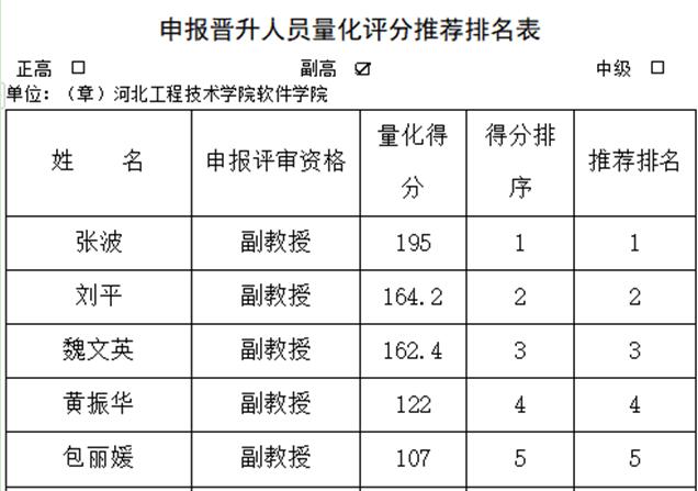 根据省职改办《关于做好2022年全省职称申报评审工作的通知》要求,按照《河北省职称评审条件》文件要求,软件学院组织评审小组集体会议,现将量化打分结果公示如下: