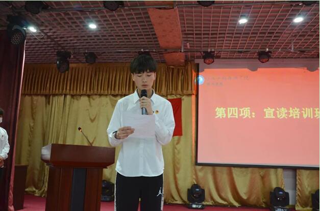 软件学院团总支青马委员岳已乔宣读本次青马培训班通报。