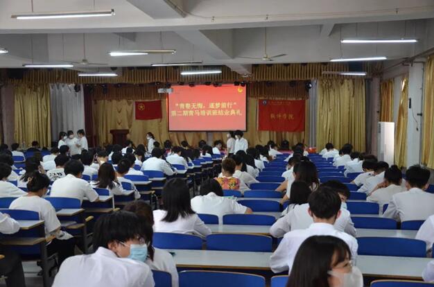 2022年5月19日下午,软件学院在次教101举行青马班结业仪式。出席本次仪式的有软件学院团总支书记于录老师、团总支学生副书记胡建明、组织委员苗智辉、青马委员岳已乔、监察委员赵津以及225名参训学员。这是学院在喜迎党的二十大、庆祝中国共产主义青年团成立100周年、纪念“五四”运动103周年之际的一次高扬理想旗帜、凝聚青春力量的盛会。