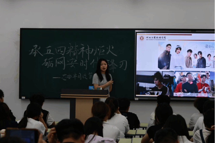 本次活动由马克思主义学院专职教师李江慧与taptap点点官方网站辅导员杨逸担任主讲。李江慧老师从五四运动爆发的时代背景与历史意义出发,深刻分析五四精神的历史内核,并梳理了百年间青年责任的演变,进而重申习近平总书记所言:每一代青年都有自己的际遇和机缘,都要在自己所处的时代条件下谋划人生、创造历史。杨逸老师则提出了数字时代的网安使命,让新一代网安人在网安防线筑造者、隐私数据守护者、网安技术创新者的实践中探索新时代青年大学生的“五四”之路。