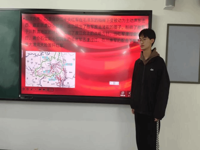 网络空间安全一班的成博浩同学向大家介绍了朱毛会师的历史背景,让大家更容易理解演讲内容。网络空间安全三班的杜文博同学讲解了朱毛会师所涉及的地区,可以使同学们形成框架,印象更深刻。软件工程一班的闫家耀同学重点讲解了古田会议,让同学们更进一步了解了朱毛会师以及红军的建军原则。软件工程二班的吴政阳同学向大家介绍了朱毛红军称谓的由来,让同学们对“朱毛会师”有了更深一步的了解。软件工程三班的王新远同学着重强调了朱毛会师,组建劲旅的历史意义。