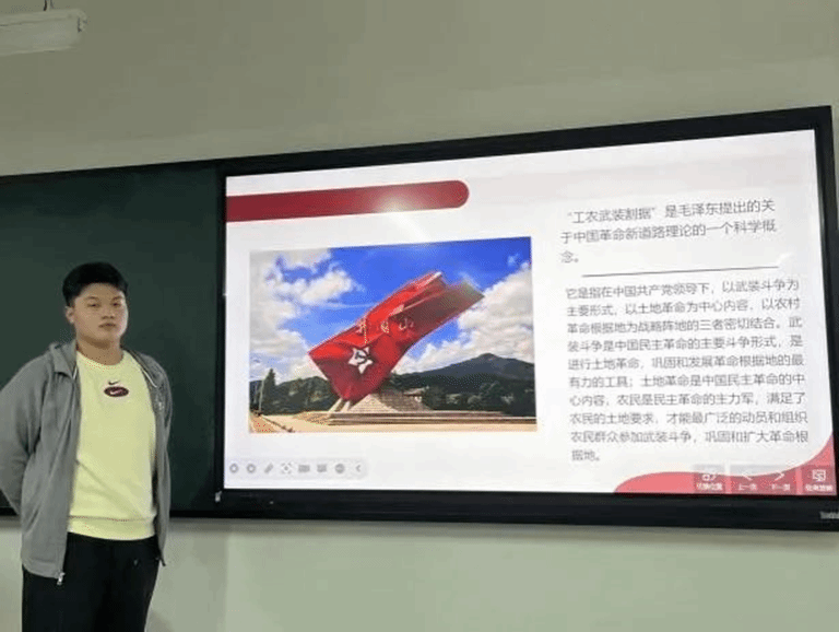 2022级软件工程3班许宇轩同学讲述了反“围剿”成功的经验是从实际出发,没有机械地执行苏区中央局错误的指令,打破国民党军队的“围剿”,创造了红军战争史上大兵团伏击战的范例。