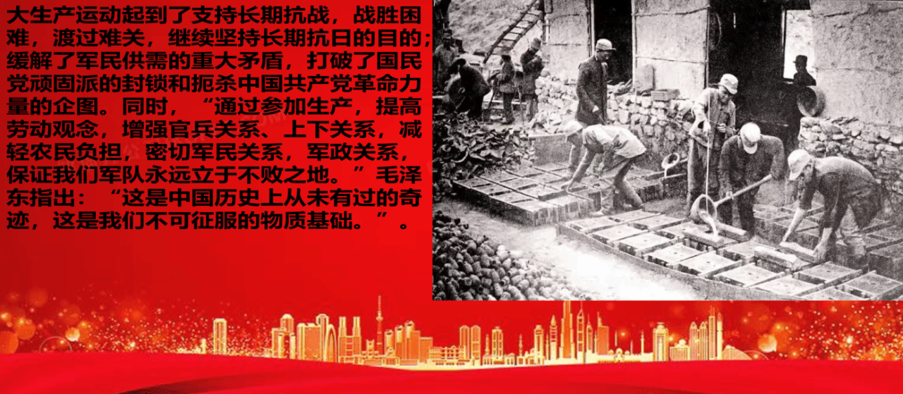 1938年日本侵略者无力再发动大规模战略进攻,全民族抗日战争由战略防御阶段转入战略相持阶段。太平洋战争的爆发,战线的延长和长期的战争消耗,使得日本加急对华作战,与此同时,国民党政府消极抗日,积极反共,形势复杂,不容乐观。当时财政经济非常困难,为了渡过难关,党中央适时调整根据地建设各项政策,开展大生产运动。接下来,让我们重温当年轰轰烈烈的大生产运动。