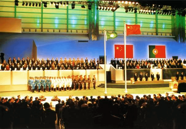 每天清晨,澳门特区的金莲花广场都会举行升旗仪式。许多市民和游客专程赶来这里。升国旗,唱国歌,成为晨光中一道美丽风景。雄壮的国歌声穿越时光——1999年12月20日零时,在澳门文化中心,伴随着雄壮的《义勇军进行曲》,鲜艳的中华人民共和国国旗和澳门特别行政区区旗在万众瞩目中冉冉升起、高高飘扬。阔别数百年,澳门终于回到祖国的怀抱。那一刻,澳门内外、神州大地一片欢腾,遍及五大洲的华夏儿女兴奋不已,很多人热泪盈眶。