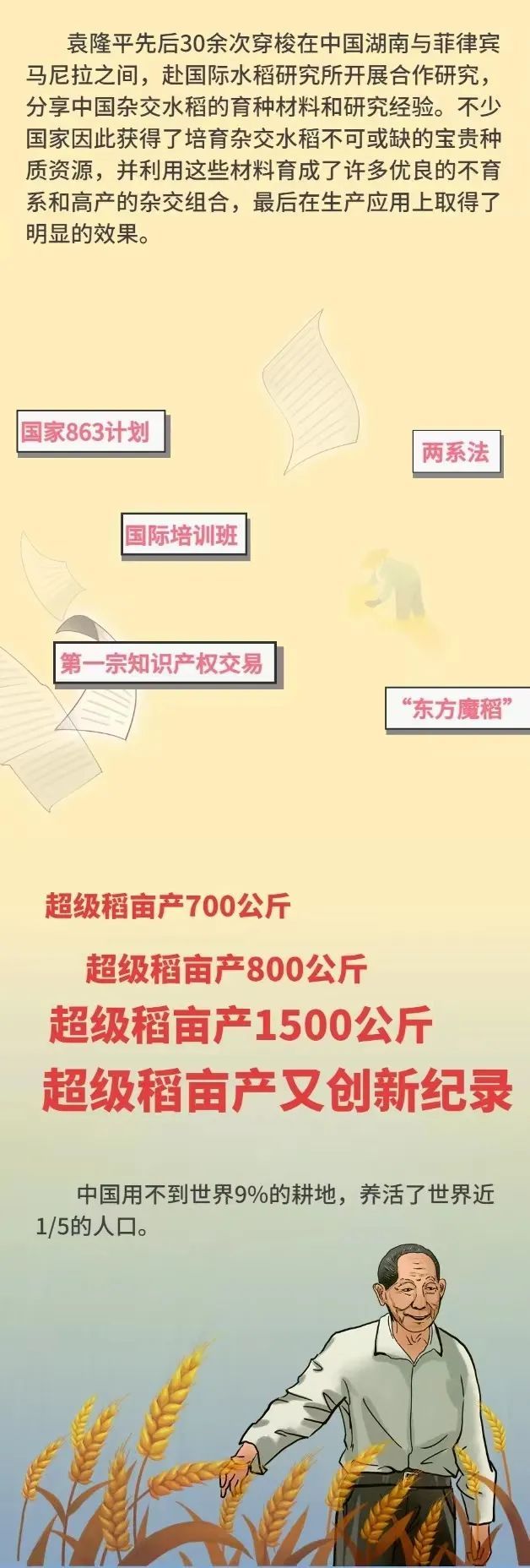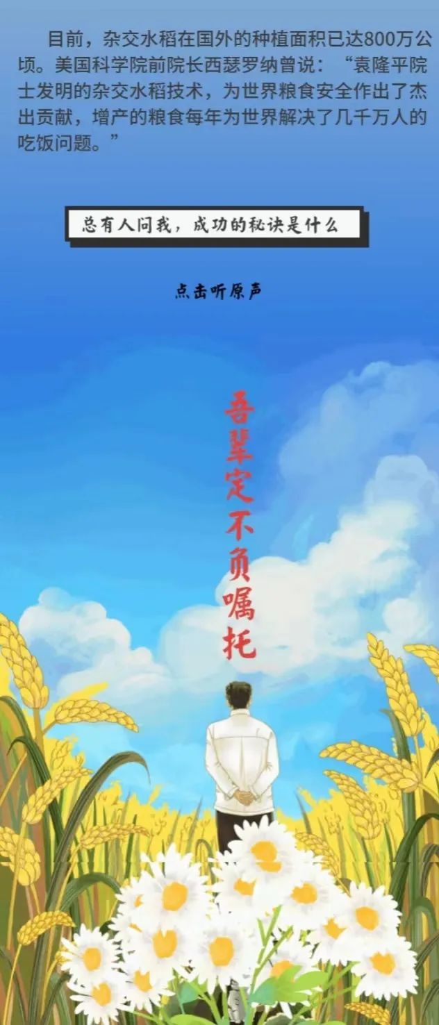 晚年的袁隆平患上了慢阻肺,多走两步路都会喘气。即便如此,他仍打起精神,对外展现出最好的状态。91岁的他在去医院的路上,乐观地唱起了《歌唱祖国》:“歌唱我们亲爱的祖国,从今走向繁荣富强……”