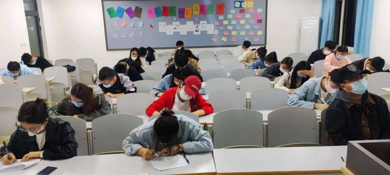 考试期间,考场肃静,每位入党积极分子全神贯注的写着试卷,教室里只有沙沙的写字声,线上考试学生人人都“埋头苦干”思考问题,专心致志把想好的答案写试卷上。