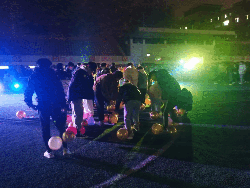 活动间隙同学们还进行了与老师互动的游戏,大家在活动中大家分成小组,团结协作,不仅仅带来了欢乐,更是培养了大家共同协作攻克难关的精神。