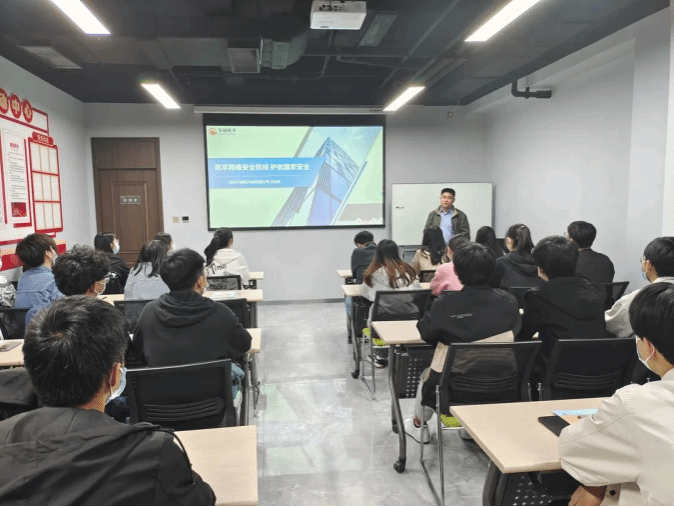到达企业后,企业老师李龙首先给学生们介绍了公司的基本情况,并结合学生的专业让学生清楚本专业毕业后可以从事的工作,让学生对本专业的岗位有一个具象的认知;然后李龙老师带领学生参观公司并对公司的岗位做介绍;最后在公司的电子屏幕中介绍云影网络攻击诱捕系统,让学生对学习本专业激发出更浓厚的兴趣。参观期间,公司副总为同学们讲解了一场生动的讲座。他从行业角度为同学们解析当前网络安全的现状及发展趋势。并进一步介绍到,如今伴随着大数据、云计算、移动互联等技术的应用与发展,给我们的生活带来的前所未有的便捷,但我们在享受互联网红利时,也埋下了巨大的网络安全隐患。同时,为同学们讲解网络安全专业的现状、发展趋势以及就业前景,对自己毕业后的就业方向和奋斗目标也更加明确。