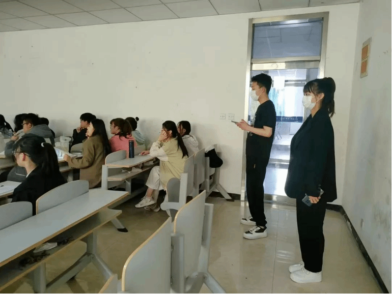 首先,新龙之慧社团行政部的同学提前到岗,检查同学们上课考勤情况并点名确认,每天上课过程中,行政部同学轮流不定时在走廊检查并查看各班课堂纪律,检查过程中个别学生打瞌睡,都被行政部同学叫醒,保证了课堂上每一分钟的高效利用。