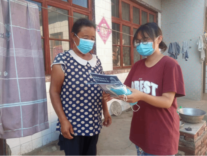 队长韩玉婷在组织队员的同时,也积极地完成自己的工作。在街上巡逻宣传、在村进出口执勤,在门口对进出的行人进行排查。同时,在做好安全防护前提下,协助村书记开展值班登记,详细填写台账,记录来往人员的信息。指导村民使用“冀石通”来进行核酸检测,减轻工作人员负担。