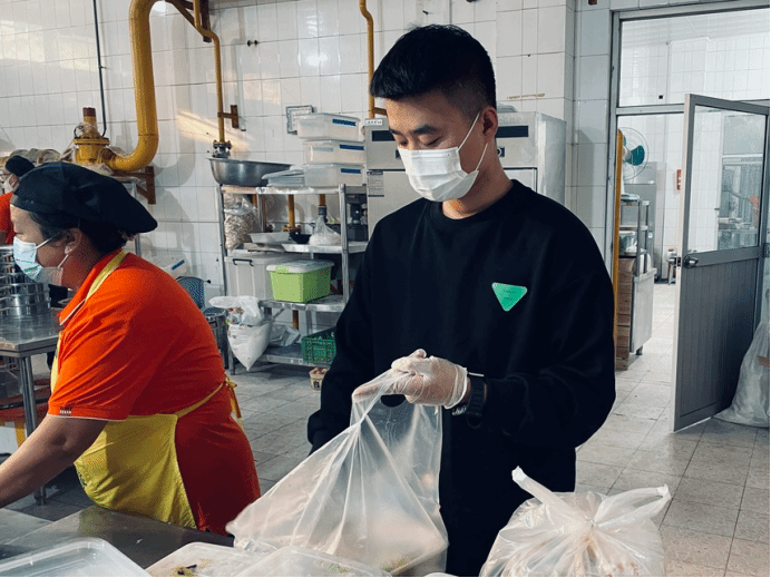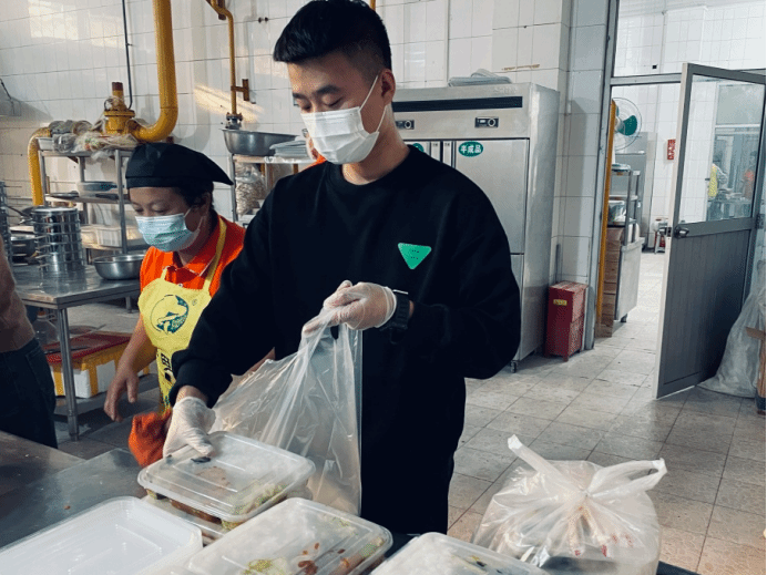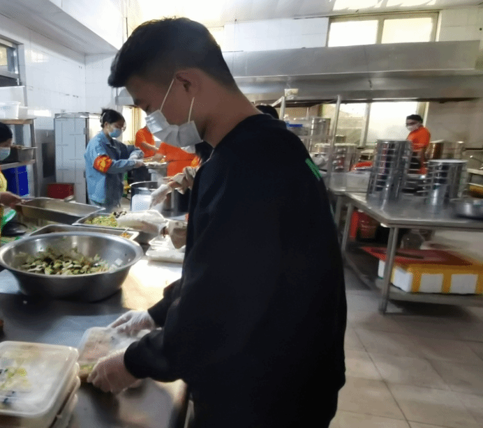 在志愿活动期间,李泽华同学主要负责组织三餐盛饭,到报餐处核实餐数以及与老师核实酒店隔离餐数,为静默期间的同学们提供他们的一日三餐。即使在迎新点没有他忙碌的身影,但在食堂后厨有他辛苦的付出。志愿者的工作很多时候是站在那里,可能一站就是两个小时重复着一样的动作,但是他没有任何怨言,他说:“我是一名退伍军人,退伍不褪色,爱国是一种精神,服务人民更是一种责任。我要在默默的付出中找到自身的价值,在大家的相互配合,合理分工之下,带着使命感完成任务”