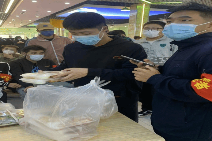 在开学季的志愿服务中,李龙同学在前期担任巡楼组工作,后主要投入到送饭工作中。他和老师对接宿舍订餐数据,组织志愿者进行送餐。结束后,还组织送餐志愿者对隔离楼层的垃圾进行清理,保持楼道卫生清洁,给同学们一个良好的隔离环境。