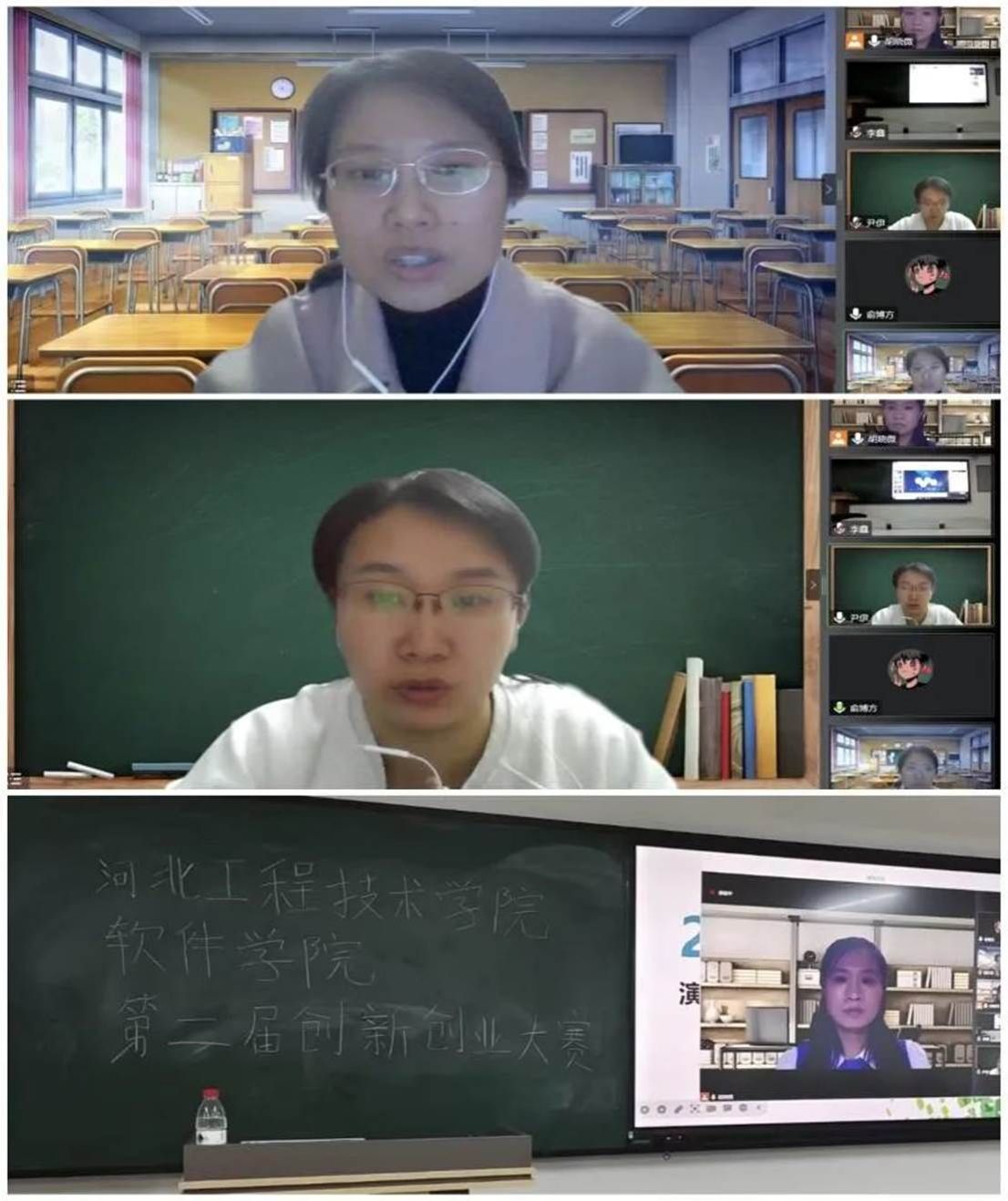 比赛于11月13日晚6点30分在次教403进行现场创业大赛的比拼环节,本次比赛采取线上、线下相结合的方式进行,评委老师由创新创业导师团队胡晓微、尹伊和魏文英3位老师,线上进行一一点评,参赛队通6分钟PPT路演和3分钟答辩等环节向评委展示了自己的创新创业项目。经过激烈角逐,《帮帮忙》项目获得一等奖;《自清洁桌》和《可替换气囊手机壳》两个项目获得二等奖;《智慧养老》《智慧电子桌》《新型闹钟服务系统》三个项目获得三等奖,《港口物流》、《互联网“陪伴服务”》和《VR-次元》等六个项目获得优秀奖。