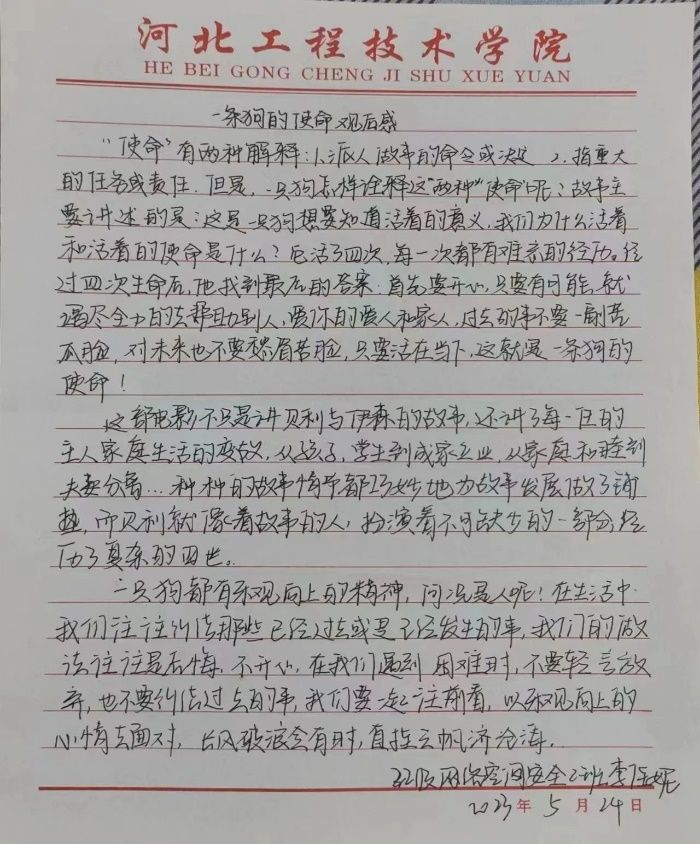 此次活动以播放电影视频的形式进行,电影《一条狗的使命2》给同学们带来了心灵上的洗礼,让同学们进一步体会生命的美好,珍惜生命,热爱生命。参与观看的同学们也明白了:人活着并不是为了做什么大事,只要开心地度过每一天,爱自己、爱身边的人,便够了,因为一辈子并不长,开心生活才最实在。