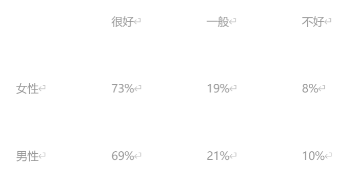 如图表所示,村里的女性居民和男性居民对于村里乡村振兴现状的意见有所不同,但相差也不大,大部分村民认为当前村子较富裕,说明乡村振兴政策实施有效果,但还说有部分村民对于当前现状不满意,说明覆盖范围还是不全面,仍有一些地方存在问题。下一步就需要加大实施力度,扩大覆盖范围。