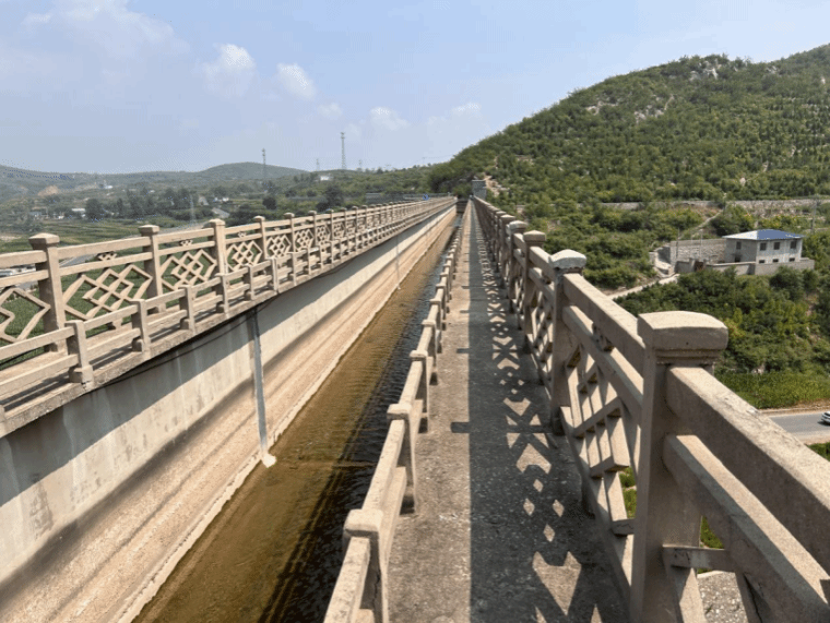 站在渡槽上眺望远方,跃峰渠如一条巨龙般盘旋在太行山脉的山腰。但这条巨龙并不是什么神灵的保佑,而是靠劳动人民的辛勤付出得到的。它遇山开路,遇谷搭槽,保证着人民的用水。