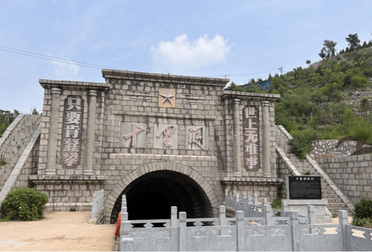 磁县跃峰渠十里洞位于河北省邢台市磁县境内,是一处自然景观和人文景观相结合的旅游胜地。这里的“十里洞”是指一条长约10公里的峡谷,洞内有多个洞穴和瀑布,景色壮观。十里洞地质复杂,岩层多变。有坚硬如铁的火焦岩,有软硬相间的鹅卵层,有见风就酥的风化土,每掘进一米,都有说不完的困难。十里洞位于磁县白土镇,进洞口在上寨村东南,出洞口在白土村东北,全长5186米,故起名为十里洞,开凿宽度为6米,高度为5.6米,断面为马蹄型,流量为30立方米/秒,是1975年至1976年“邯郸地区山区建设指挥部峰峰矿区民工团”修建的,团部在白土村三大队,施工不到两年时间,修渠民工从2500人逐步增加到5000人。
