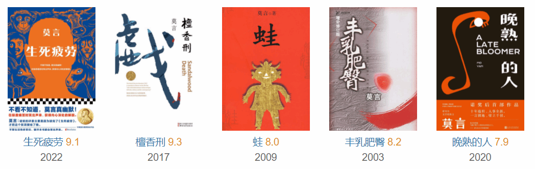 其作品深受魔幻现实主义影响,代表作有《红高粱》《檀香刑》《丰乳肥臀》等,其中《蛙》获第八届茅盾文学奖。2012年10月11日,莫言获得2012年诺贝尔文学奖,颁奖词称莫言“用魔幻般的现实主义将民间故事、历史和现代融为一体”。2013年10月30日,中国首家培养网络文学原创作者的公益性大学“网络文学大学”开学,莫言担任该校的名誉校长。2014年12月,莫言先后获颁香港中文大学、澳门大学荣誉文学博士学位 。据不完全统计,莫言的作品目前至少已经被翻译成40种语言。