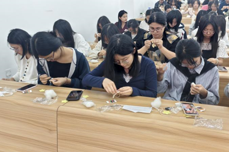 活动现场,彩色布料、棉花、针线等制作材料一应俱全,同学们以小组为单位,围坐在一起,构思挂件样式。他们将网络安全元素巧妙融入设计,有的小组设计出盾牌造型的挂件,寓意筑牢网络安全防线;有的则把常见网络诈骗符号缝制在挂件上,提醒大家时刻警惕。制作过程中,同学们各显身手。穿针引线、裁剪布料、填充棉花,每个环节都有条不紊。部分同学在布艺制作方面经验丰富,主动分享技巧,帮助其他同学解决难题。与此同时,大家围绕网络安全话题展开热烈讨论。一位同学讲述因下载不明软件导致信息泄露的经历,引得众人反思日常网络行为。现场交流声、笑声、讨论声交织,气氛热烈。随着活动接近尾声,一个个精美的布艺手工挂件呈现在大家眼前。这些挂件不仅做工精致,还承载着丰富的网络安全知识。同学们相互展示作品,分享创作心得与对网络安全的新认识。有同学表示,这次活动让他意识到,网络安全不仅是技术问题,更需要每个人在日常生活中保持警惕。