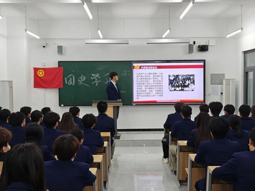 本次团史学习活动形式多样,内容丰富。学生代表贾浩哲以生动的语言、详实的史料,从共青团的诞生背景、发展历程、重要事件等方面,全面系统地阐述了共青团在党的领导下,始终坚定不移跟党走、为党和人民不懈奋斗的光辉历史。同时,在讲座中还结合新时代共青团的使命与担当,鼓励青马学员们要不忘初心使命,勇担时代重任。