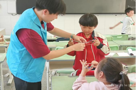 志愿者们有序进入小学,正值课间,孩子们活泼的身影在操场上穿梭。看到志愿者们的到来,孩子们立刻围拢过来,志愿者们分组开展活动。来到每个人负责的相应班级,帮助他们指导作业,打扫卫生,教室其乐融融。有的志愿者在教小孩儿画画,在讲故事,还有的人跟小孩一起玩耍起来表演才艺。