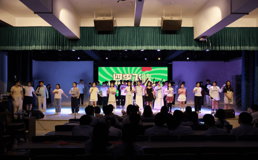 歌舞类节目以蓬勃朝气点燃现场:2024级软件工程1班团支部用情景剧致敬五四,用诗朗诵传承先辈之志,用歌曲《有我》致敬中国共产主义青年团,展现当代青年的蓬勃力量;2024级网络空间安全6班团支部《我和我的祖国》合唱堪称视觉盛宴—背景大屏的蓝天白云下,五星红旗挥舞飘扬,同学们手中星星灯随旋律汇成“星河”,前排手语表演者以指尖“书写”对祖国的深情,庄严与温暖在舞台上层层晕染;2024级软件工程3班全体学生共同出演,以班级生活写照与荣誉获得为背景,搭配《像你这样的朋友》音乐,博采众长,真切的让大家感受到这是一个朝气蓬勃,团结一致的集体!