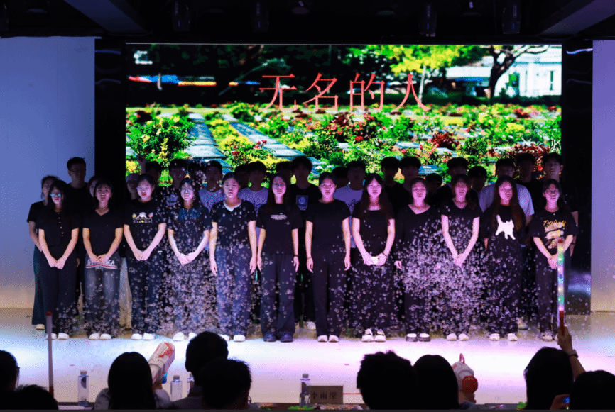 创新类节目尽显巧思:2024级网络空间安全1班团支部别出心裁地将《少年中国说》铿锵演讲与《起风了》柔美舞蹈融合,红旗挥舞间,“少年强则国强”的宣言与灵动舞姿共振,勾勒出当代青年“可上九天揽月”的壮志;2024级网络空间安全3班团支部以抗疫纪录片式话剧开篇,从医护人员凌晨泡面、社区工作者深夜值守的细节切入,随后《七里香》旋律渐起,用温柔歌声包裹抗疫艰辛,让观众在泪水中感受“岁月静好”的来之不易;2024级空间信息与数字技术1班团支部表演两位缉毒警察做卧底将毒贩一网打尽的话剧,搭配合唱《无名的人》,向隐蔽战线的英雄们致敬;2024级软件工程4班团支部采用影子幕剧形式,同学们生动演绎,从街头抗议到展望未来,配合激昂音效,重现五四青年为家国振臂高呼的场景,传递爱国担当。