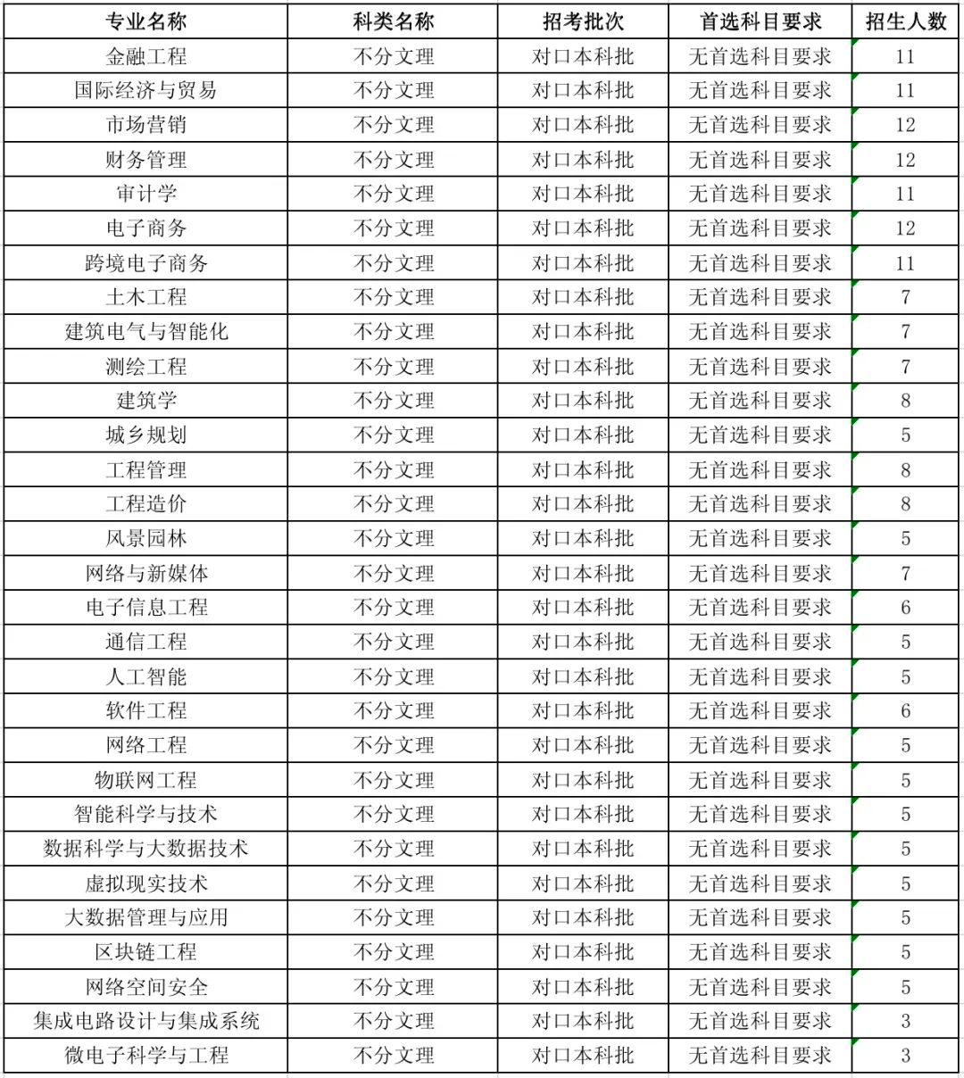 招生计划——山东