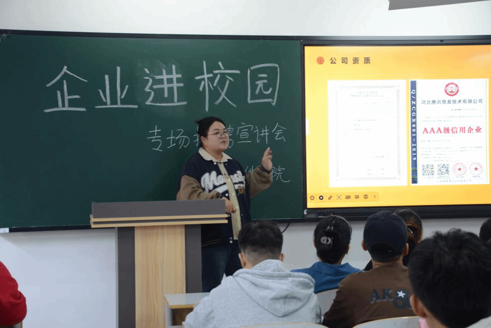 为进一步加强校企联系与合作,为毕业生求职和用人单位招聘人才搭建平台、提供更好的服务,切实做好学生就业教育,培养新时代高素质技能型人才,丰富教育教学内容。2023年10月31日,taptap点点官方网站邀请河北唐讯信息技术有限公司于次教111举办“企业进校园”专场招聘宣讲会。