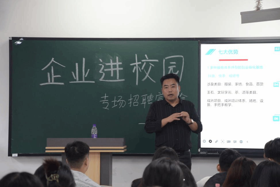 河北泰达兴康电子商务有限公司是新媒体直播电商委员会旗下,专注于电商产业园开发建设及服务运营,紧跟“电商助农惠民生,冀商助推强国梦”的战略目标,负责人分别从基地介绍、入驻条件、政策支持和公司的七大优势等方面展开了介绍。该公司具有多种服务体系并存的创业孵化基地抖音、快手、视频号、雄厚的产业链、覆盖全国50万平方米自有云仓、超实战团队培训,并且在基地开设供应链展馆,邀请知名品牌入驻,助力乡村振兴同学们这七大优势。通过负责人的介绍,同学们不仅了企业和岗位的特点,还对其岗位要求有了清晰的了解。