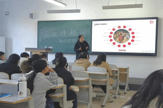 永辉超市成立于2001年,是中国企业500强之一,是国家级“流通”及“农业产业化”双龙头企业。永辉超市被国家七部委誉为中国“农改超”推广的典范,通过农超链接,以生鲜特色经营及物美价廉的商品收到百姓认可,被誉为“民生超市、百姓永辉”。永辉超市坚定科技永辉的战略方向,全力打造一个以生鲜为基础,以客户为中心的全渠道数字化零售平台。随后企业老师详细讲解了该企业的就业前景与岗位信息,使同学们更深刻的了解了该行业的行业现状与发展趋势,在宣讲会的最后企业老师还向同学们分享了一些优秀学员的经验与故事,为同学们的职业发展指明方向。