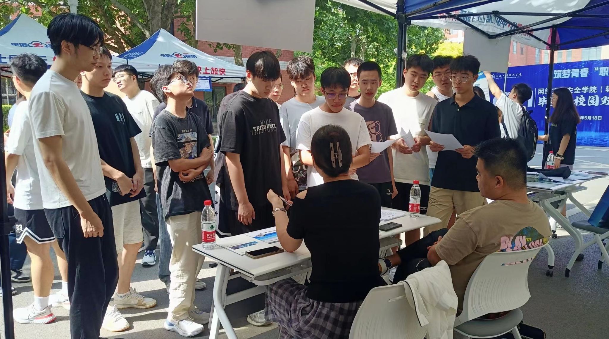 在招聘会现场,毕业生们与用人单位面对面交流,了解公司的招聘需求、就业工作内容及薪资待遇等方面情况,面对毕业生们的积极提问,企业负责人们热情回应,认真回答他们的问题。毕业生们手持个人简历,与企业沟通后把个人简历以及获奖证书直接投递给心仪的企业,部分企业也会根据学生投递简历情况组织现场笔试,以便后续参加企业面试。其他年级的学生也积极关注此次招聘会,在现场询问企业负责人当前就业形势与企业岗位需求,为自身的职业生涯提前做好规划,找准求职方向。