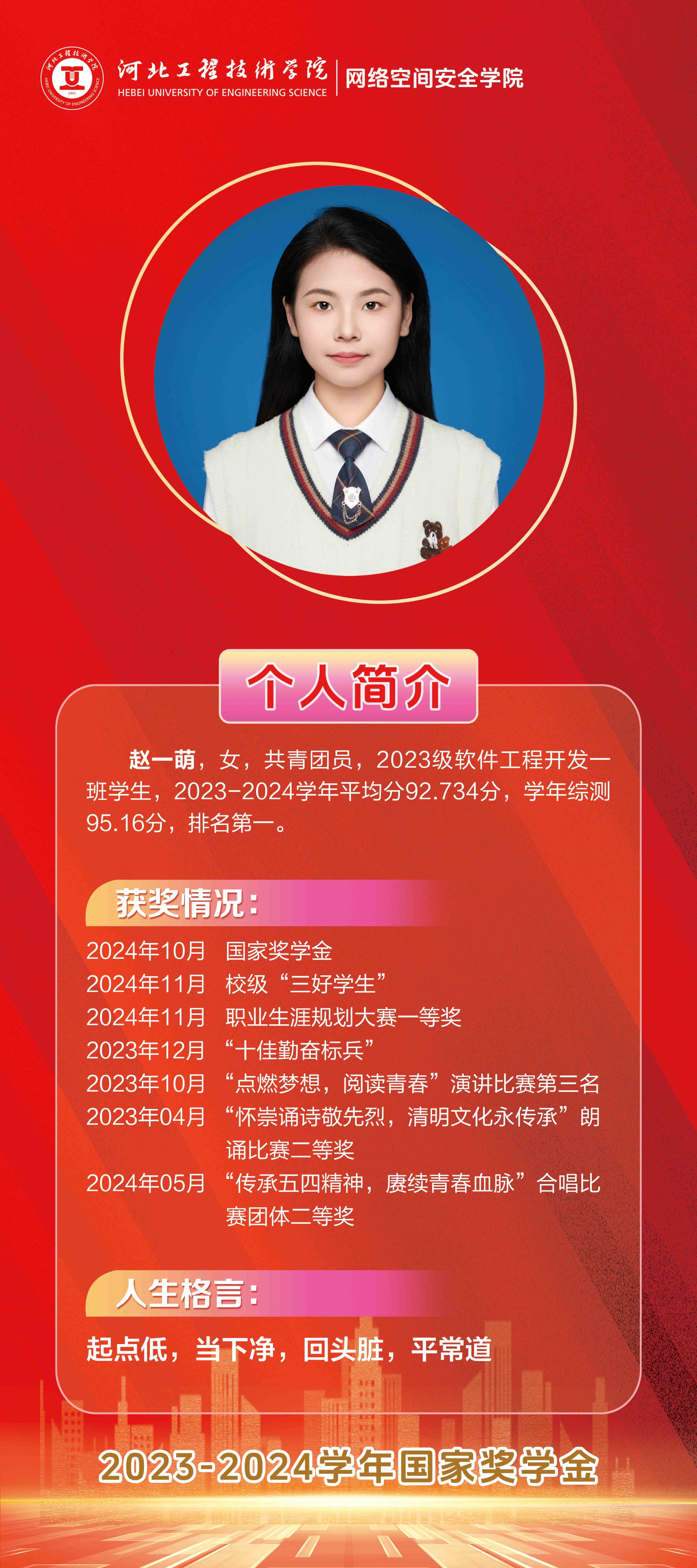 国家奖学金 | 赵一萌:起点低,当下净,回头脏,平常道