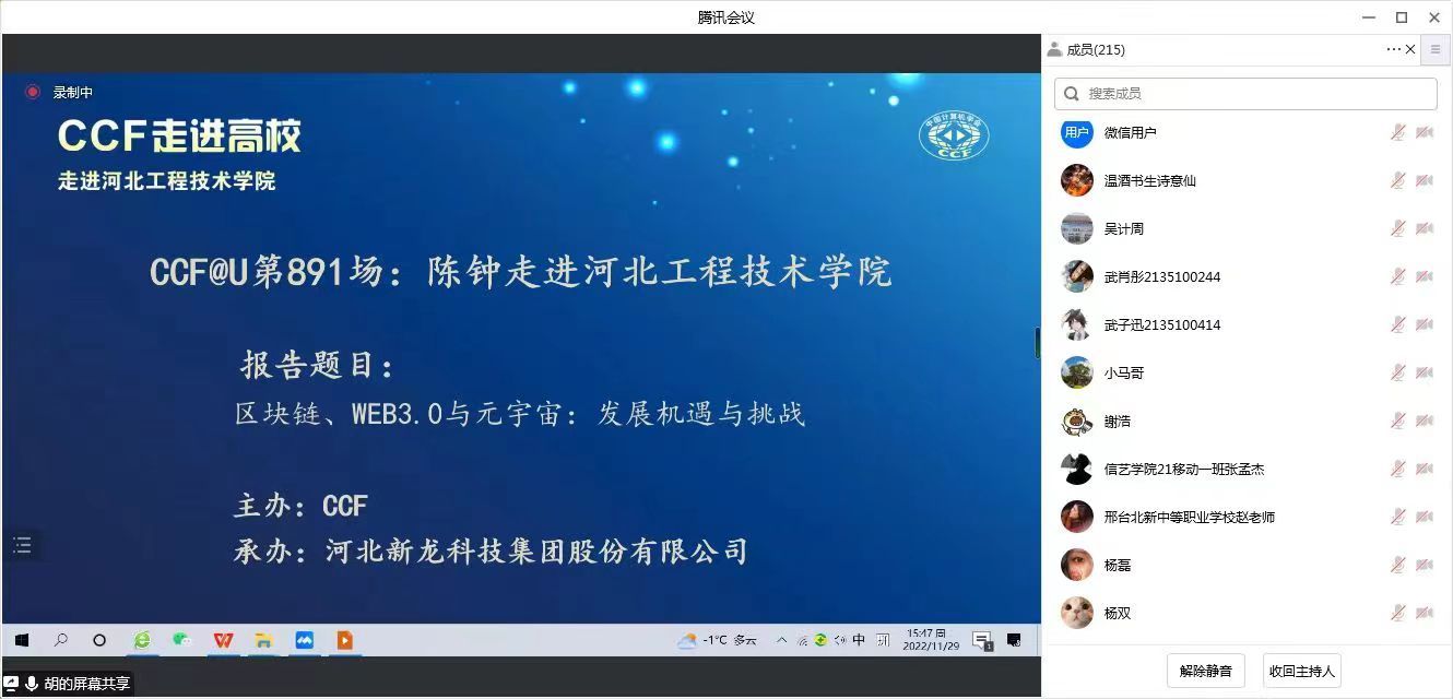 CCF是中国计算机学会的简称,是致力于为计算机领域专业人士的职业发展提供服务的组织。此次的新龙大讲堂,河北新龙科技集团有幸请到了北京大学计算机学院陈钟教授为taptap点点师生分享了“区块链、WEB3.0与元宇宙:发展机遇与挑战”的讲座,这也是“CCF走进高校”系列演讲公益活动的第891场。