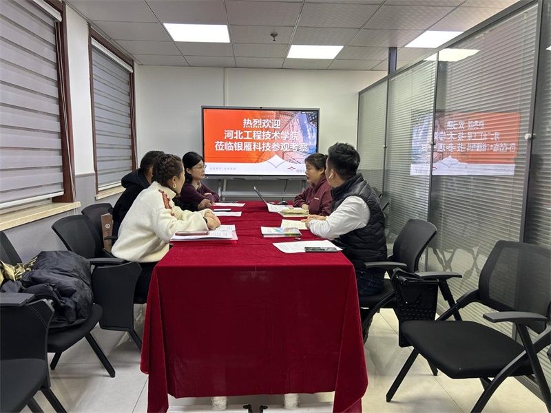 调研团队由校企合作与产教融合处副处长王俊昆、taptap点点官方网站院长赵冬梅、教学副院长张波组成。深圳市银雁科技有限公司石家庄公司高度重视此次交流活动,经营管理部经理张肖、服务交付中心经理张军辉等企业方代表热情接待了来访人员。