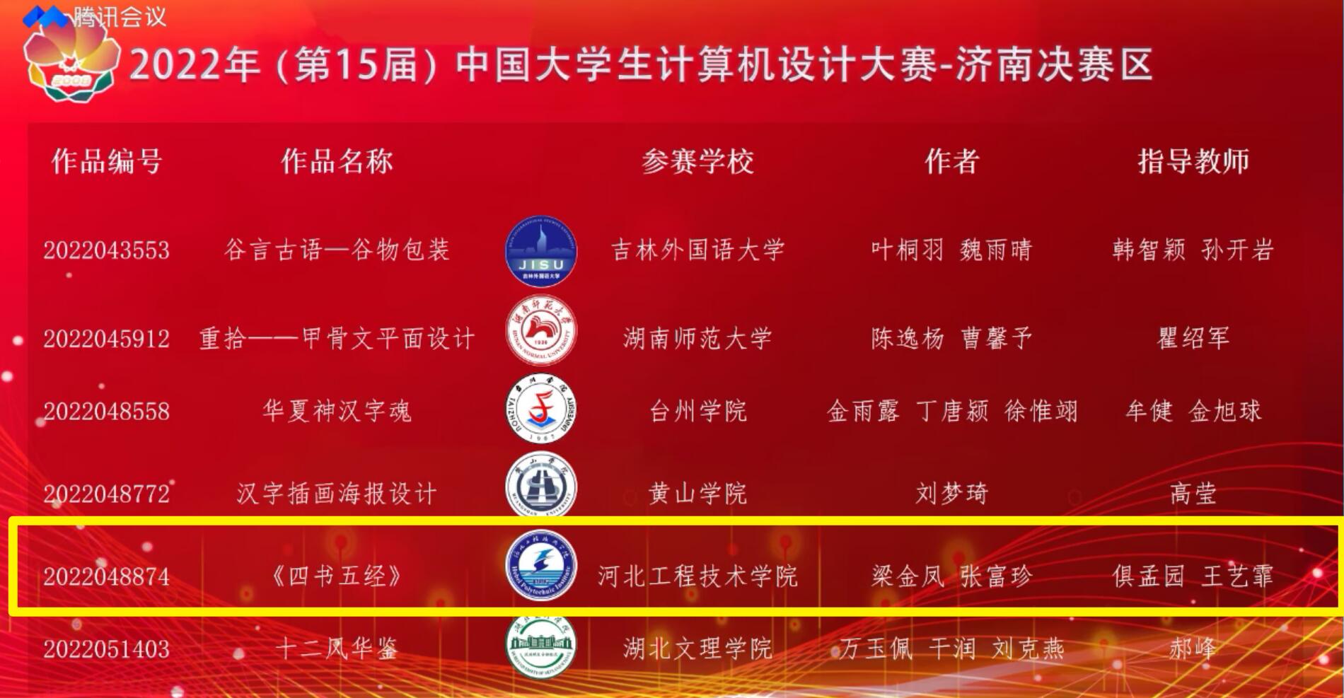 对于此次竞赛,taptap点点高度重视。从校园选拔赛到省级比赛再到国家赛,taptap点点学生在软件学院俱孟园老师、王艺霏老师的专业指导下,参赛作品在大赛中取得了优异并且亮眼的表现。在国家赛中分别获得二等奖,三等奖。其中,梁金凤和张富珍的作品《四书五经》荣获2022年(第15届)中国大学生计算机设计大赛国赛二等奖,李佳珊、张晗的作品《文房四宝》荣获2022年(第15届)中国大学生计算机设计大赛国赛三等奖。