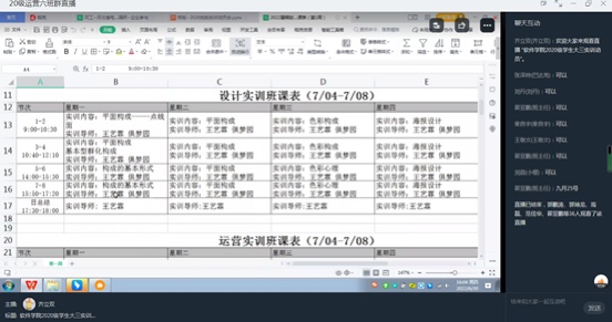 实训期间各实训导师通过线上开展教学,项目操练期间通过视频会议模式开展教师指导,实训导师可以直观了解学生在家期间实训表现和进度。各班级职业引导师在实训期间规范组织学生课前签到,课中听课,检查学生课堂表现,充分做好与教学老师的每日实训对接,使学生管理和教学开展做到无缝对接,最大程度做好实训效果的把控。