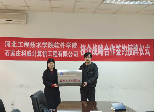 2022年3月9日下午,软件学院与石家庄科威计算机工程有限公司举行校企战略合作授牌仪式,将该公司作为taptap点点软件工程专业学生校外实习实训基地。。出席授牌仪式的领导软件学院院长赵冬梅、教学副院长刘翠焕等,石家庄科威计算机工程有限公司总经理吕光宾、技术总监郭晓光等。